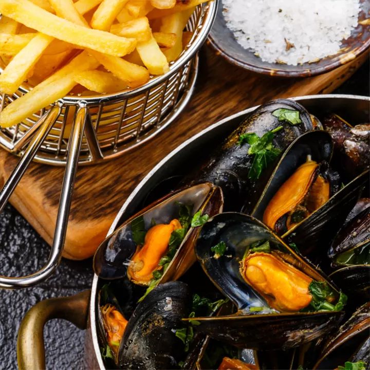 Assim como os ingleses são conhecidos pelo fish&chips, a Bélgica é famosa pelo Moules et frites. Uma combinação muito bem sucedida e, que tende agradar os paladares de quem gosta tanto de mexilhão quanto de fritas.
