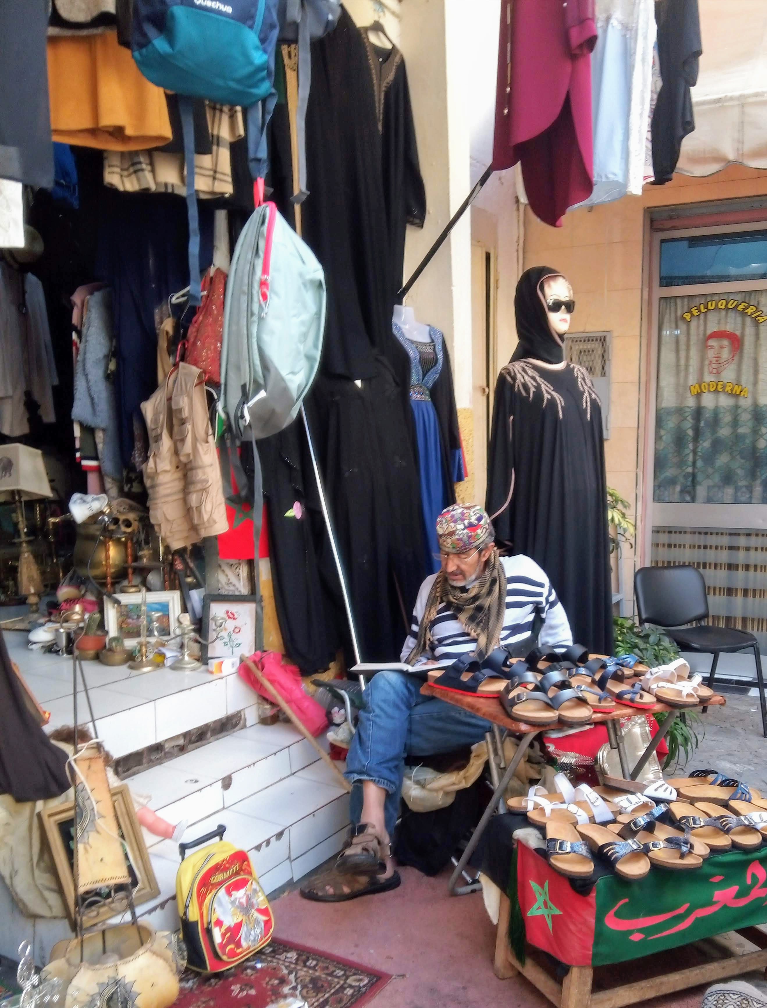 As ruas estreitas que nestes dias se encontram cobertas de tecidos para fugir ao calor, transformam se num autêntico Souk ou mercado árabe onde não faltam as djellabas, os cabedais, artesanato, especiarias e ,como não a pastelaria e o tradicional chá de menta.