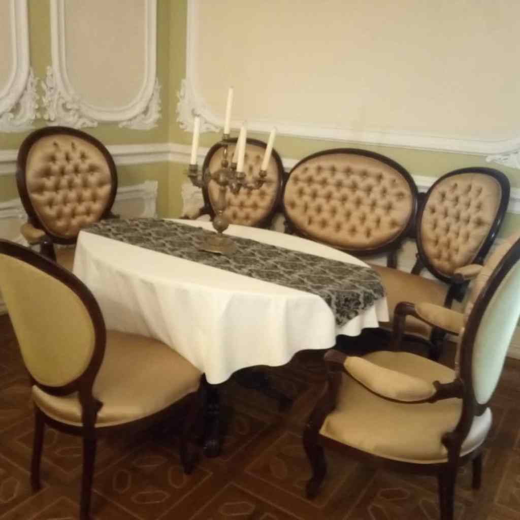 Tem seis suites decoradas com imponentes lustres do estilo rococó, sedas e brocados, sofás de veludo, tudo misturado com móveis contemporâneos.