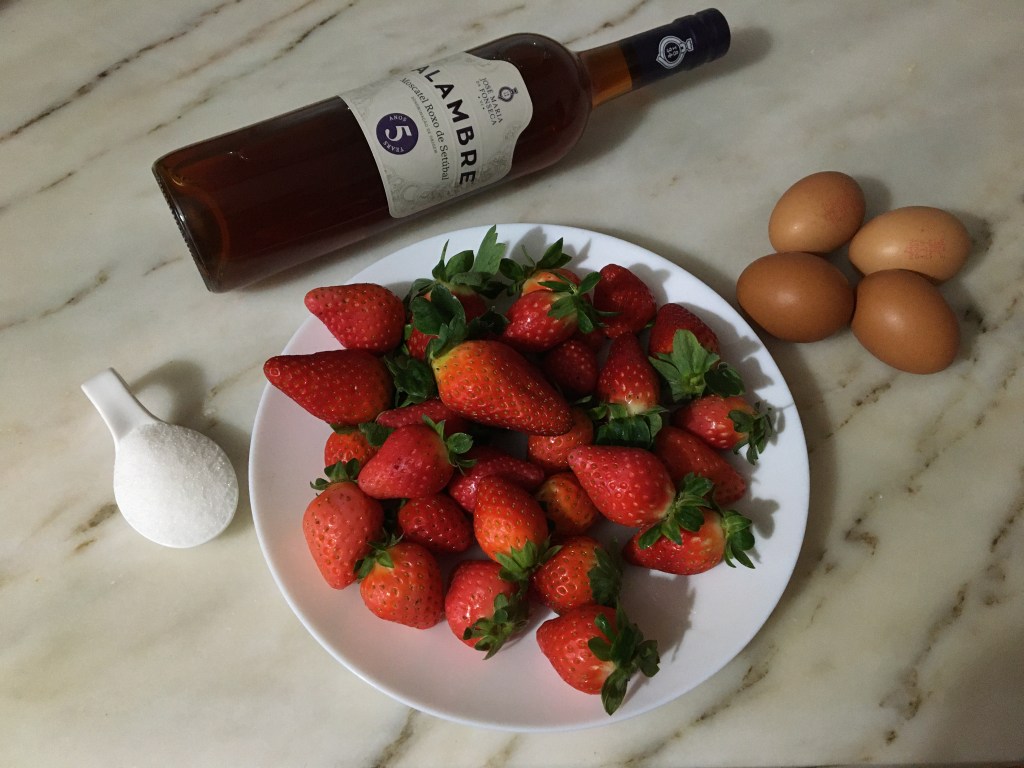 Hoje temos uma receita rápida e bem colorida. Conhecida por Zabaione ou zabaglione, é uma sobremesa típica italiana que não é mais que um creme cozido em banho-maria com gemas de ovo, açúcar e um vinho doce, o vinho Marsala. No meu caso decidi usar o moscatel roxo de setúbal. Funciona igualmente muito bem com vinho do porto